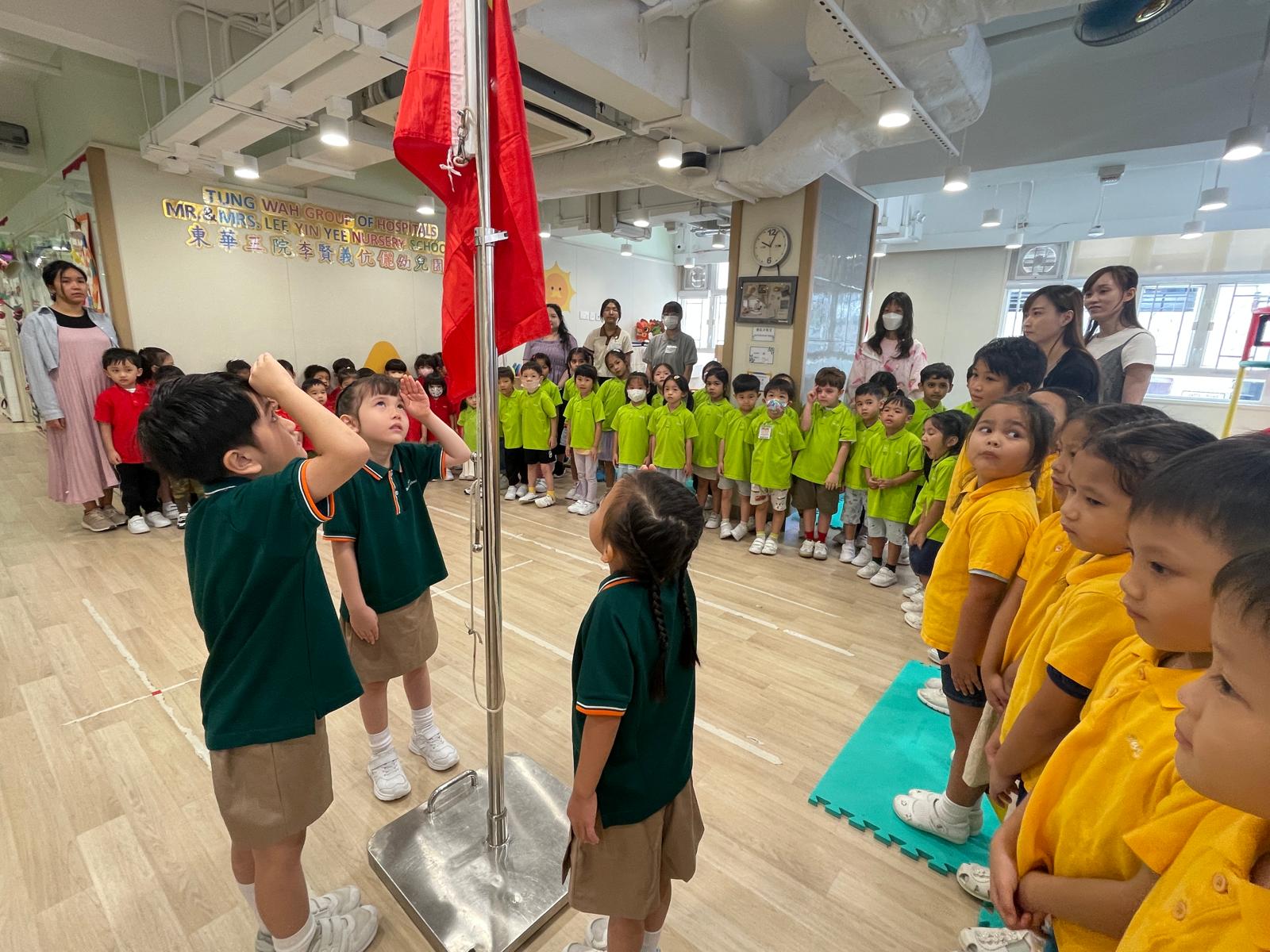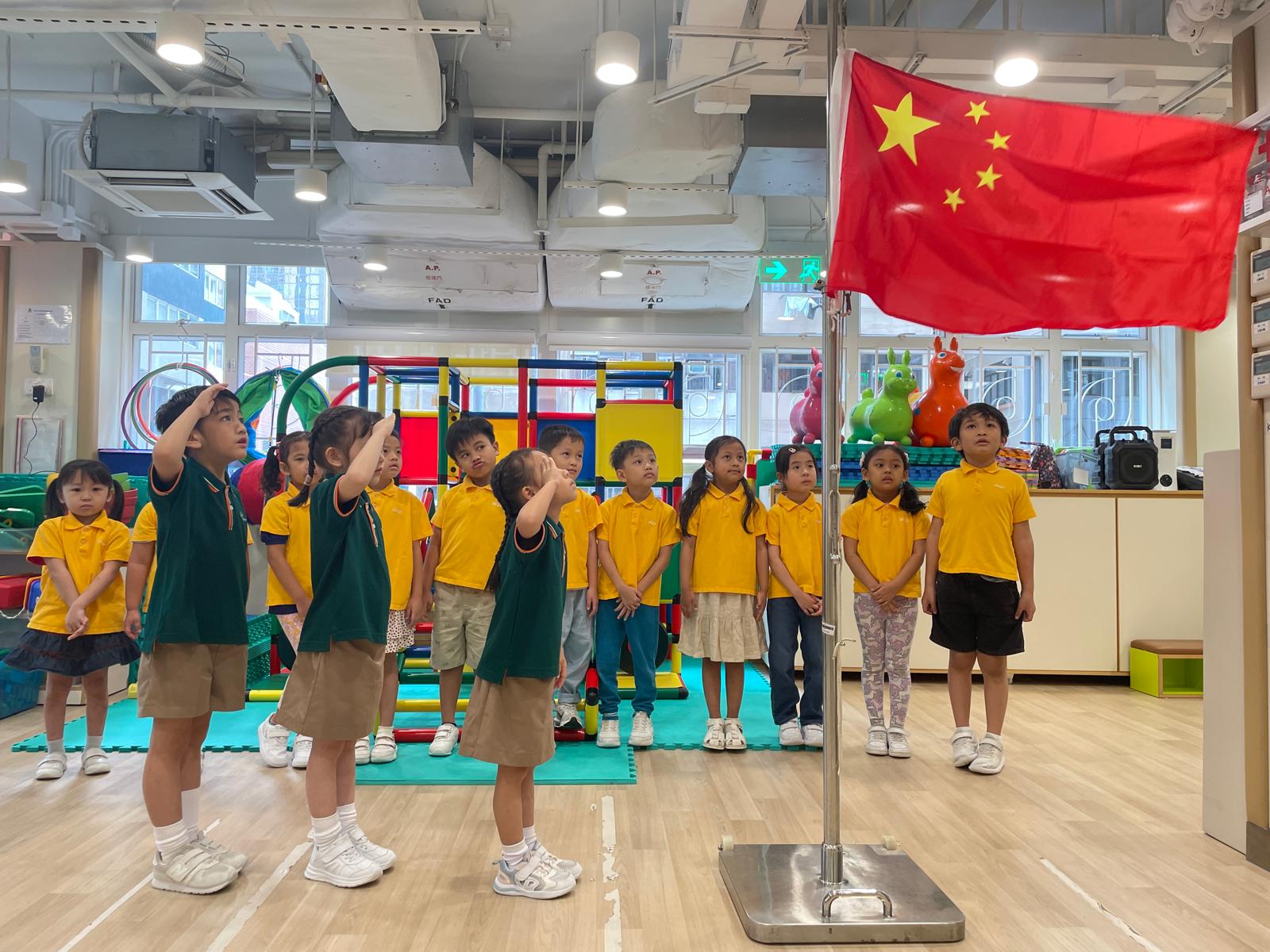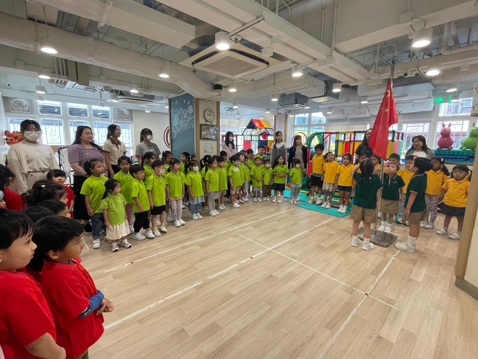 To celebrate the Hong Kong Special Administrative Region Establishment Day, our school held a flag-raising ceremony. K3 children practiced hard and acted as flag-raisers in the flag-raising.