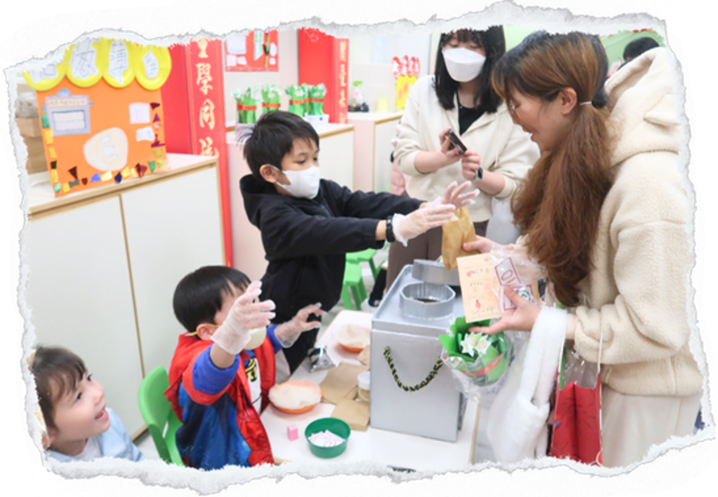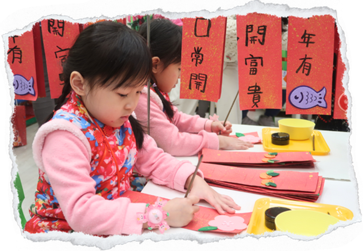 Through different activities within the theme and Lunar New Year festival picture book stories, children can learn about traditional Chinese festivals, New Year customs, and celebration activities such as: lion dance, green picking activities, general cleaning, and New Year food.
