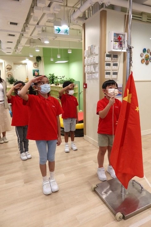 為慶祝7月1日香港特別行政區回歸祖國,學校舉行升國旗儀式,高班幼兒很努力練習並於升國旗儀式中擔任升旗手。